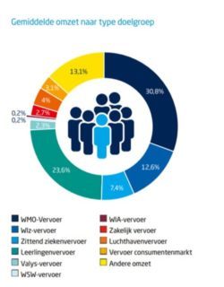 Hieronder staat de gemiddelde omzet naar type vervoer, zoals opgenomen in de Kerncijfers 2017, die zijn opgesteld door het Aanbestedingsinstituut Mobiliteit (AIM, zie hier).
